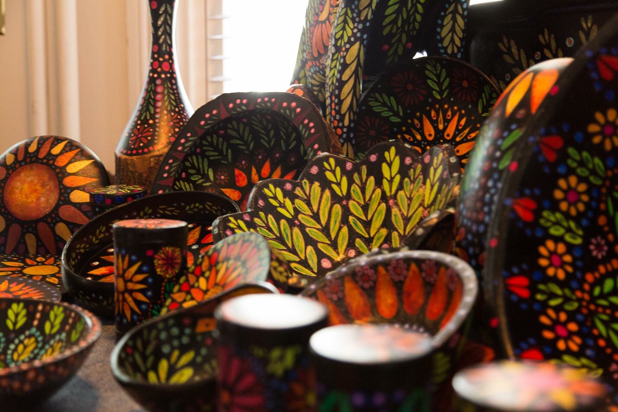 … the skills of a lapidary and metal-smithing along with working as a pottery studio assistant, JoAnn graduated from college with a degree in fine arts. Over the years, she has worked in textiles, fiber, clay, metal, and stone but recently she has focused her attention on finding different objects and infusing them with positive energy through her colorful uplifting designs.